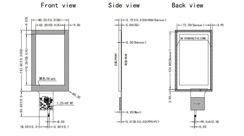 80.2x132.6x5.75 | 62.2x110.25 | 5 | FFC-6 pin | I2C | -20~70℃ | +3.3V | ILI2511 | ||||||